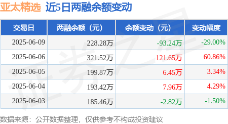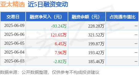 本站消息,6月9日,亚太精选(159687)融资买入38.98万元,融资偿还132.22万元,融资净卖出93.24万元,融资余额228.28万元。